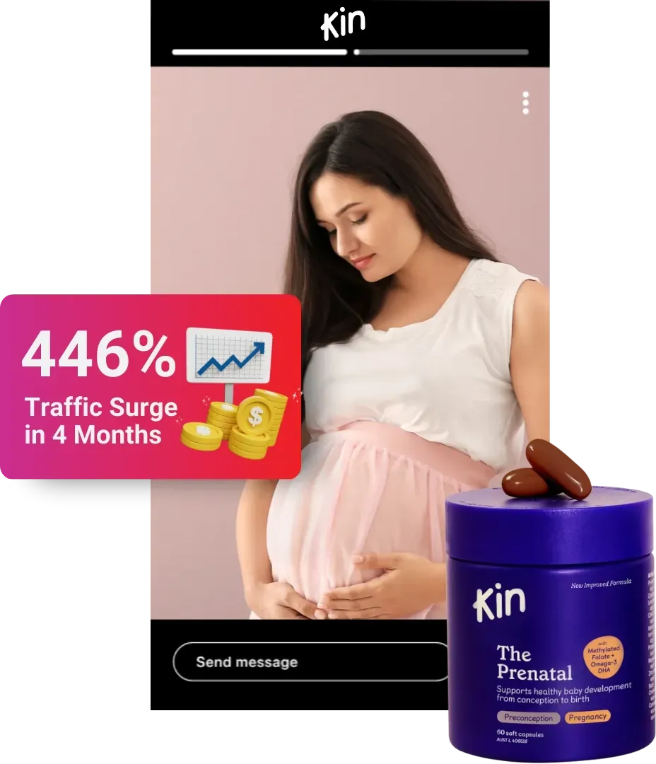 Starting from zero sales, we scaled Kin Fertility to Best Seller status in just 4 months. Through keyword optimisation, enhanced listings, and A+ content, we delivered a 446% surge in traffic, lifted average order value by 16%